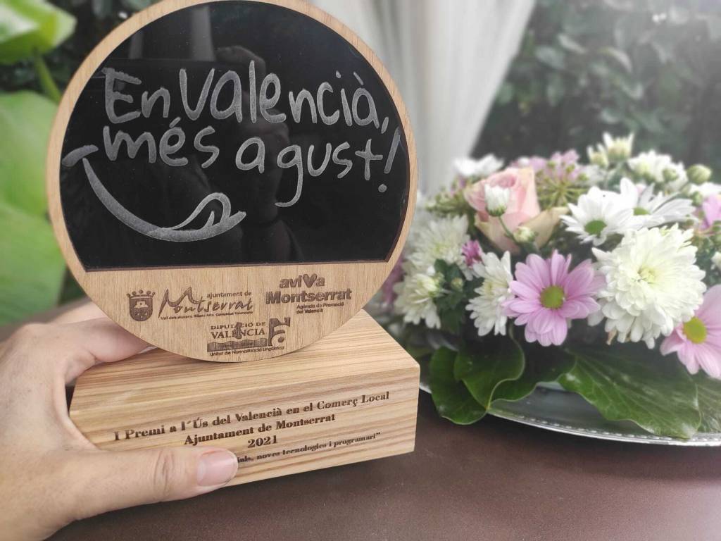 Salón Campos recibe el 1.º premio al Uso del Valenciano en el comercio de Montserrat 2021